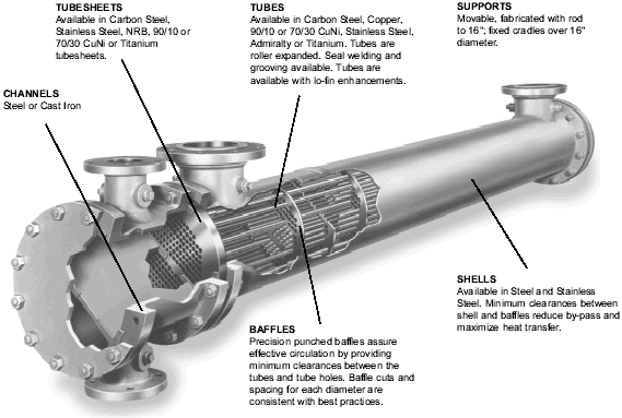 The Basco OP design, first introduced to the market in 1962, has proven to be the preferred TEMA shell and tube heat exchanger in the market. The 'OP' or 'O-ring Protection' design features a removable tube bundle, a unique toothed O-ring protector that allows for the removal of the reverse hood without draining the liquid from the body or interfering with the tube and connection flexibility. Removing the channel cover allows for full control and cleaning of the tube side.
